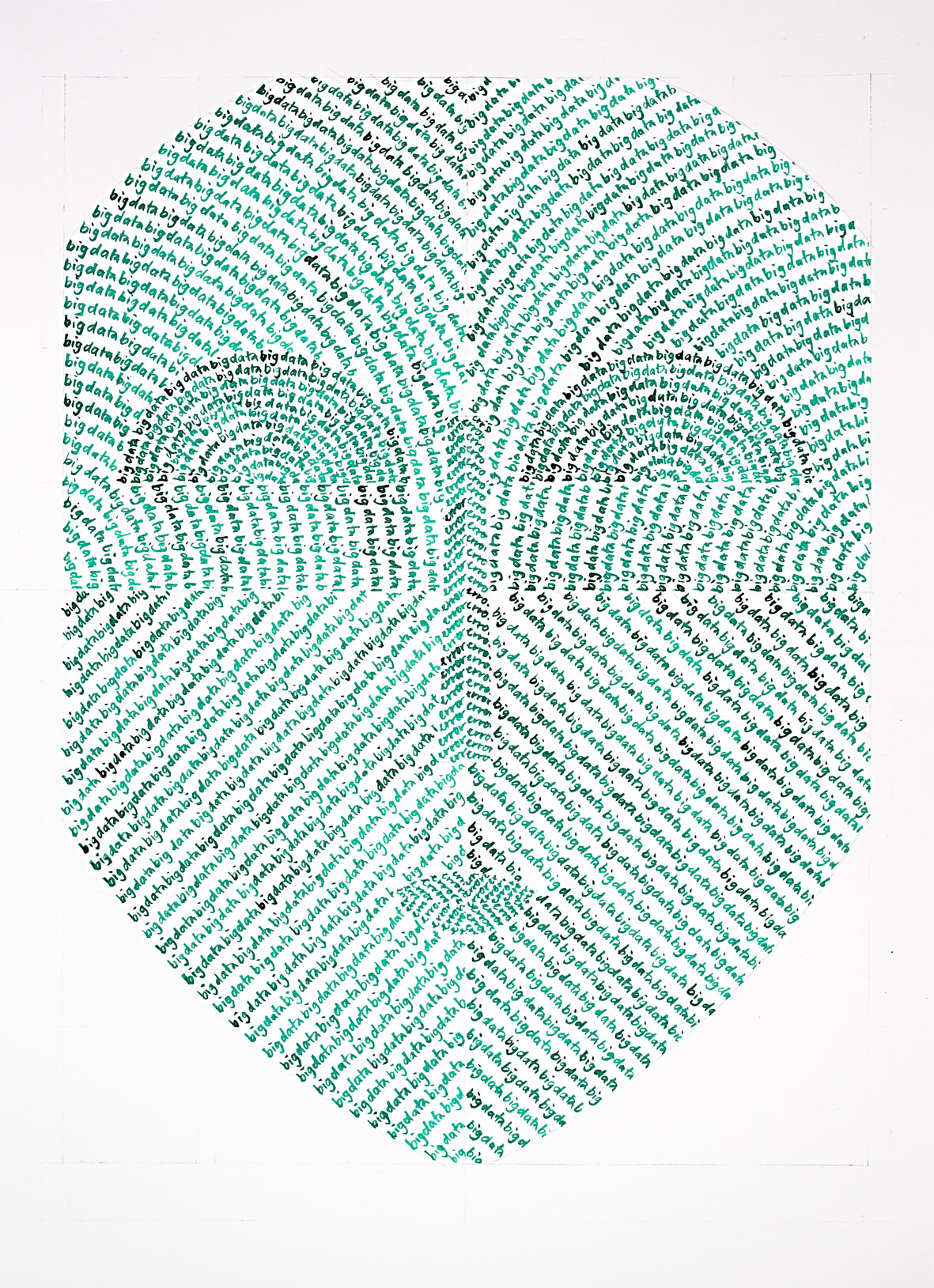 Beim Schreiben reiht sie das gleiche Wort aneinander, bis eine gleichmässige Struktur entsteht. Mit dieser Technik kann sie auf das Wesentliche reduzieren. Mit den Objekten will sie die wechselseitige Kommunikation und Wirkung mit der Gesellschaft visualisieren.